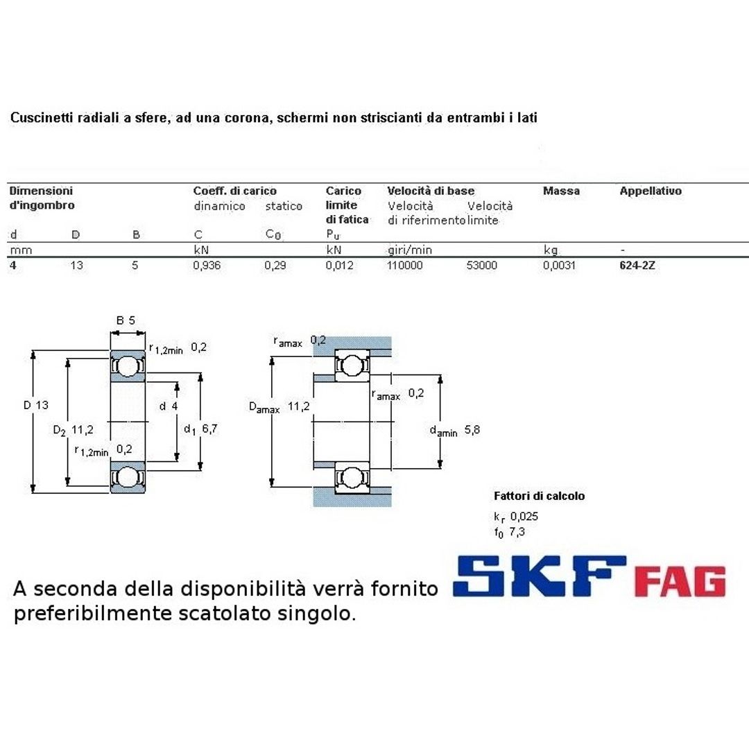 cuscinetto ad un giro di sfere a schermatura in ferro a carico radiale.Int. mm.4 - Est. 13mm. - Spessore mm.5