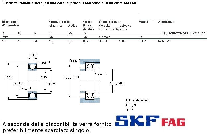 cuscinetto ad un giro di sfere a schermatura in ferro a carico radiale.Int. mm.15 - Est. 42mm. - Spessore mm.13 SERIE PESANTE