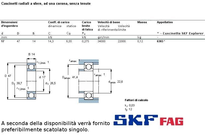 cuscinetto ad un giro di sfere (sfere a vista) a carico radiale.Int. mm.17 - Est. 47mm. - Spessore mm.14 SERIE PESANTE