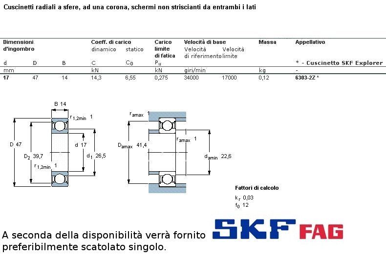 cuscinetto ad un giro di sfere a schermatura in ferro a carico radiale.Int. mm.17 - Est. 47mm. - Spessore mm.14 SERIE PESANTE