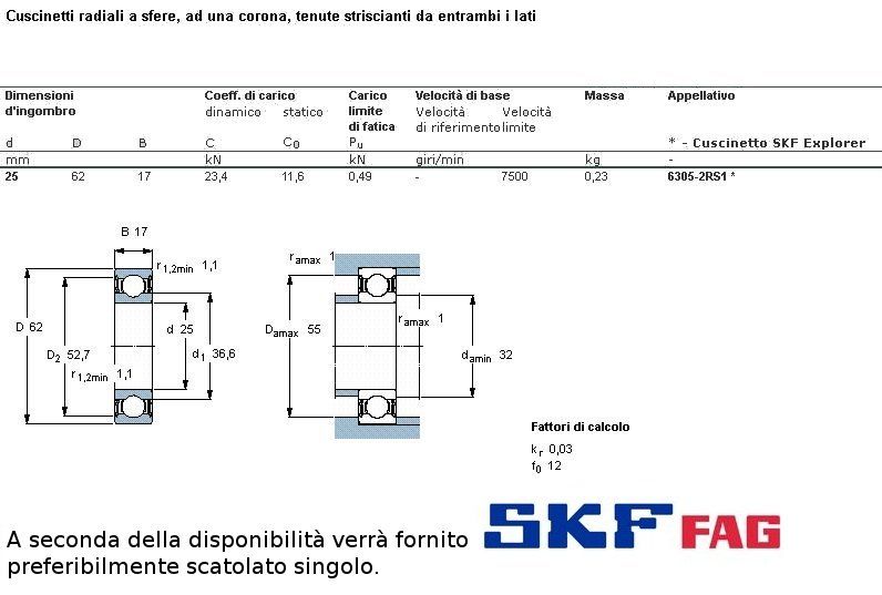 cuscinetto ad un giro di sfere a schermatura stagna (in gomma) a carico radiale.Int. mm.25 - Est. 62mm. - Spessore mm.17 SERIE PESANTE