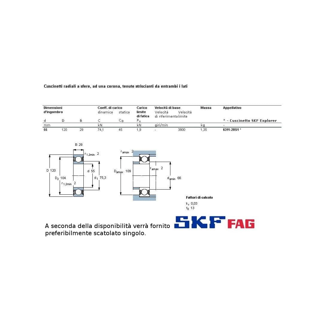 cuscinetto ad un giro di sfere a schermatura stagna (in gomma) a carico radiale.Int. mm.55 - Est. 120mm. - Spessore mm.29 SERIE PESANTE