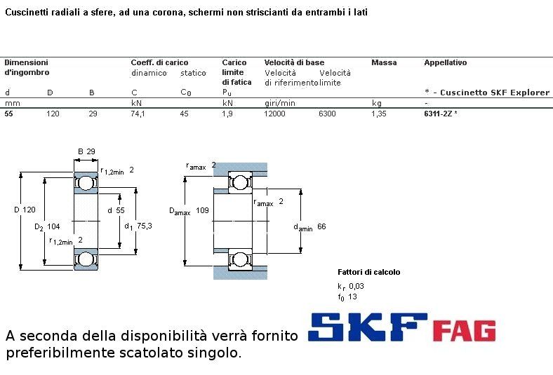 cuscinetto ad un giro di sfere a schermatura in ferro a carico radiale.Int. mm.55 - Est. 120mm. - Spessore mm.29 SERIE PESANTE