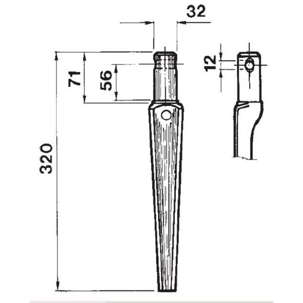 con attacco a spina dm. mm. 32 e con il corpo dente a sezione triangolare.