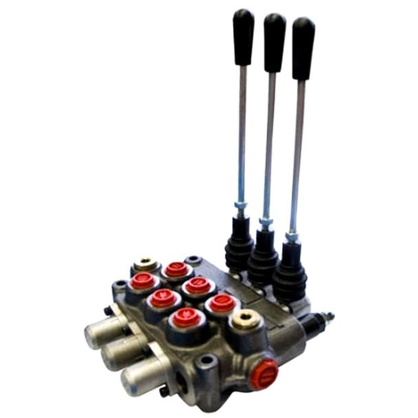 DISTRIBUTORE OLEODINAMICO A DOPPIO EFFETTO A 3 LEVE. PORTATA 45 LT. FILETTO 3/8'