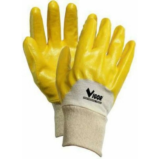 GUANTI VIGOR JAP NITRILE IN FILO DI COTONE RIVESTIMENTO IN NITRILE GIALLO SU PALMO DITA E DORSO POLSO IN MAGLIA EN-388 RISCHI MECCANICI 3111 GIALLO AERATO CE2 MIS.10 XXL WORK GLOVES