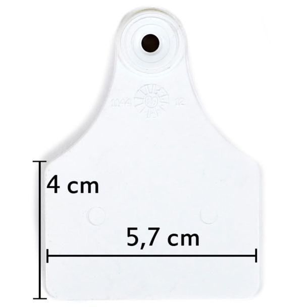 Cartellino Italflex grande per identificazione bovino maschio senza numero, in plastica bianca, altezza 4 cm., larghezza 5,7 cm.