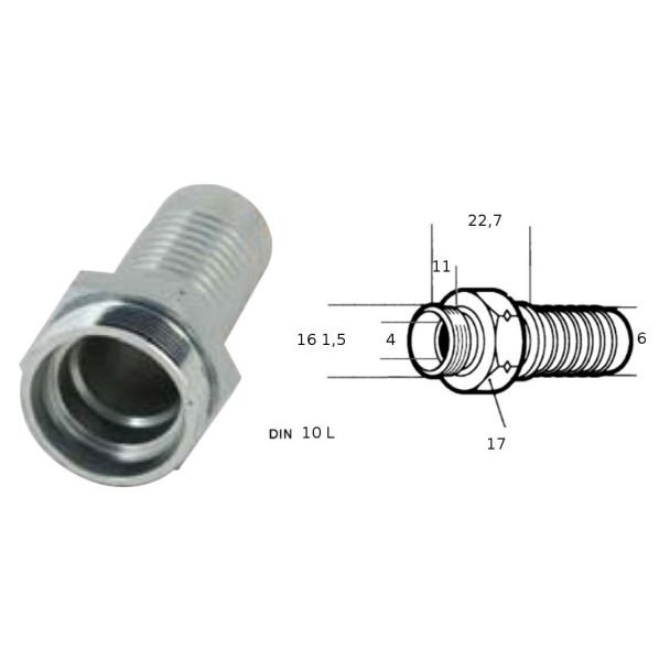 MASCHIO DIRITTO CON OGIVA A 24°. DIN 10L. FILETTO 16X1,5. TUBO 1/4' R2 (ART. AP0001)