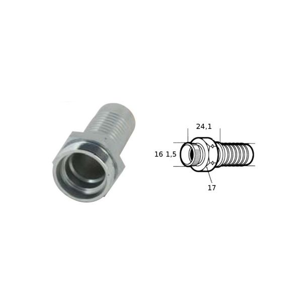 MASCHIO DIRITTO CON OGIVA A 24°. DIN 16L. FILETTO 24X1,5. TUBO 1/2' R2 (ART. AP0015)