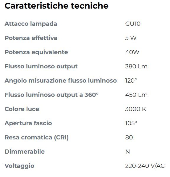 FARETTO LED, GU10, NEUTRO, 5W, 450/380LM