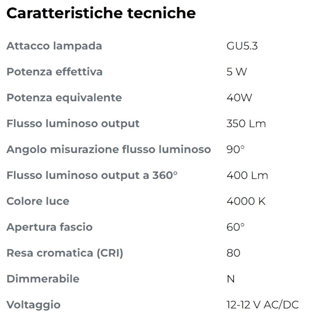 FARETTO LED, GU5.3, NEUTRO, 5W, 400/350LM