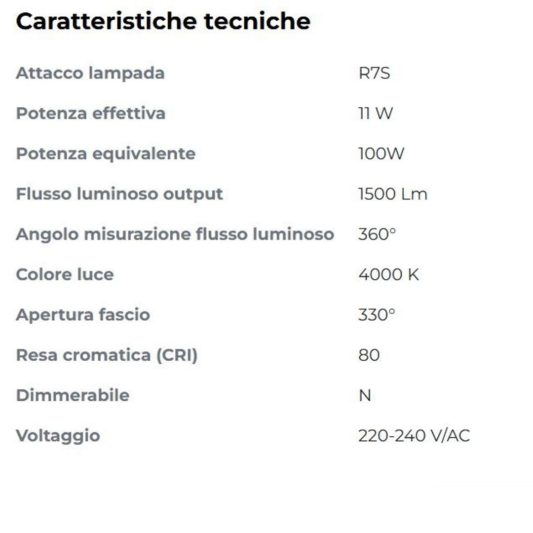 ALOGENA EQUIVALENTE LED, R7S, NEUTRA, 11W, 1500LM