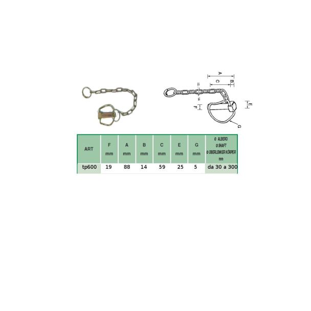 Spina scatto c/catena dm 19 - specifica per la sfera con cono (Art. TP545) per l'attacco rapido del terzopunto del trattore